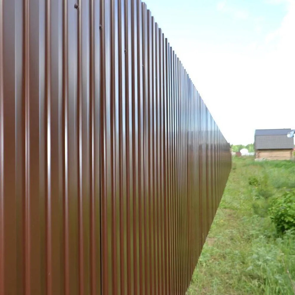 В цвете RAL 8017 профлист идеален для маскировки в лесных или урбанистических зонах. Его можно комбинировать с другими материалами, такими как дерево или камень, для создания стильных фасадов. Легкость транспортировки и хранения упрощает логистику на стройплощадке.
